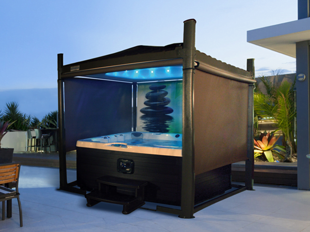 The advantages of a spa cover and a gazebo are now combined in one innovative product.
