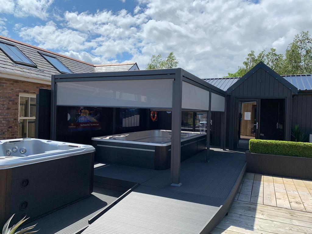 Pergola with Blinds: Alternatively, consider outfitting your pergola with stylish blinds that offer both shade and privacy. These versatile additions allow you to control the amount of sunlight filtering through, creating a comfortable and intimate environment around your swim spa. Whether you’re enjoying a leisurely soak or entertaining guests, adjustable blinds provide customizable protection from harsh rays or prying eyes. With a range of materials and designs to choose from, you can enhance the aesthetic appeal of your pergola while enjoying enhanced comfort and functionality.