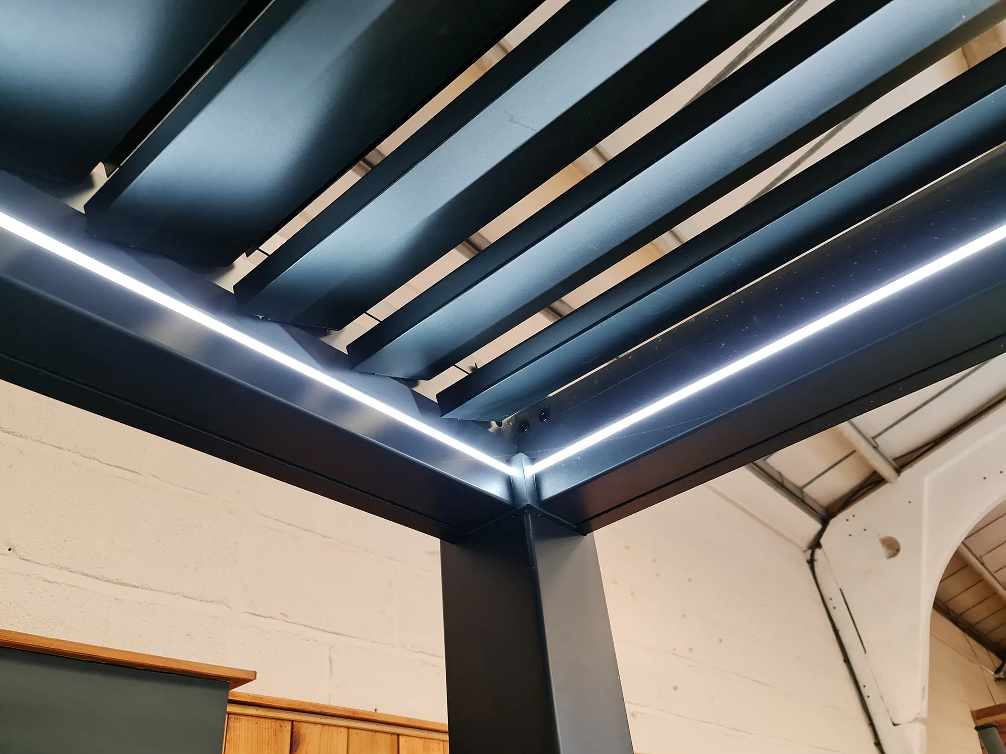 Integrated 360° degree LED lighting within the roof profile surrounds the Remanso to create a perfect outdoor setting day or night.