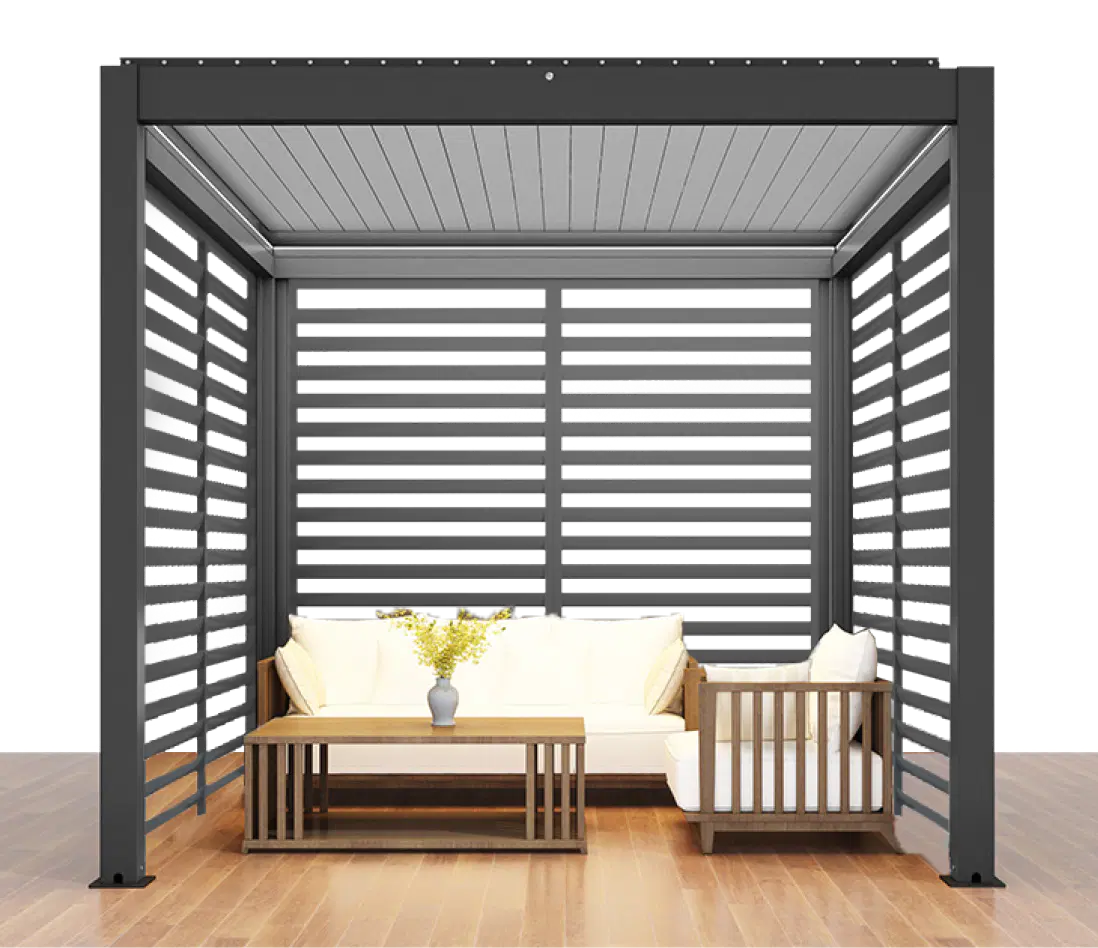 Every Remanso comes with an easy-to-use remote control that operates the roof louvres, LED lighting and optional vertical blinds.