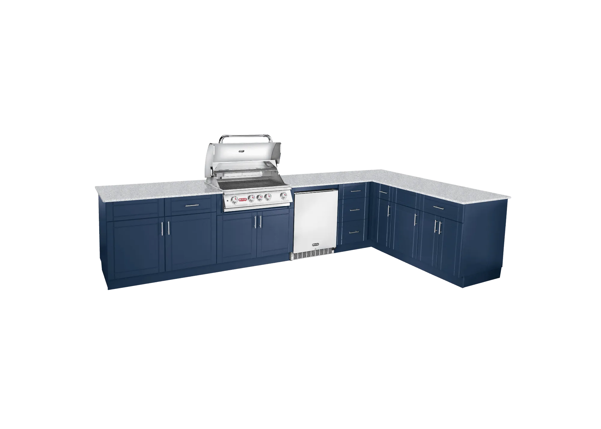 Introducing the new DuraBull ™ Outdoor Kitchen line from Bull that pairs quality craftsmanship with cutting edge innovation. Constructed of HDPE (High-density polyethylene), this new Dura Kitchen collection offers elegance with casual sophistication. Careful detailing has gone into the design and execution of each piece, from the well-crafted door embossing and edging to the Innovative patented, hidden joinery technology for solid joints. The innovative materials, advanced manufacturing, and thoughtful design allow DuraBull ™ to synthesize classic styling with a modern curve. Yes, the future of Outdoor Kitchens has arrived! The Augusta Dura Kitchen features a large bar seating area, perfect for entertaining large parties. Take advantage of the massive amount of storage capacity for all of your Grill Master tools. Step up to a luxurious grilling experience with the Augusta Outdoor Kitchen.