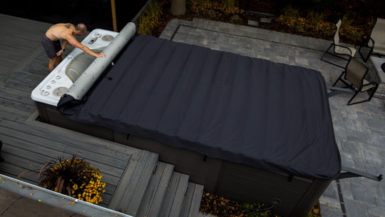 The Rollaway Spa Cover design enables one person to roll the cover off the swim spa in less than 60 seconds, providing immediate access to the swim spa for swimming, aqua fitness and hydrotherapy.