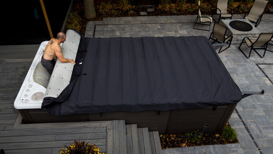 The next generation one-piece spa cover uses exclusive triple thermal shield technology which has 3 distinct insulated layers & 2 insulating air pockets. This creates a complete seal a top of the swim spa, locking in the heat, lowering energy consumption and cost.