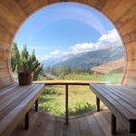 This sauna comes with an acrylic bubble back wall that allows you to see the beautiful view over the landscape from inside the sauna.