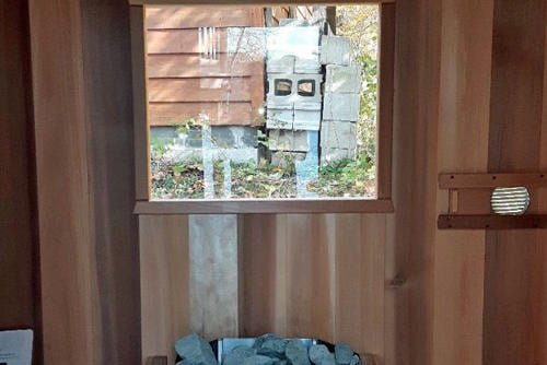 Protection shield for Harvia M3 on Barrel Sauna Panoramic View, Pure Cube Sauna and Luna Sauna also order the protection