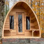 The POD Sauna has a unique design that will enhance your backyard. Handcrafted in Canada with western red cedar, and it will give you years of sauna enjoyment.
